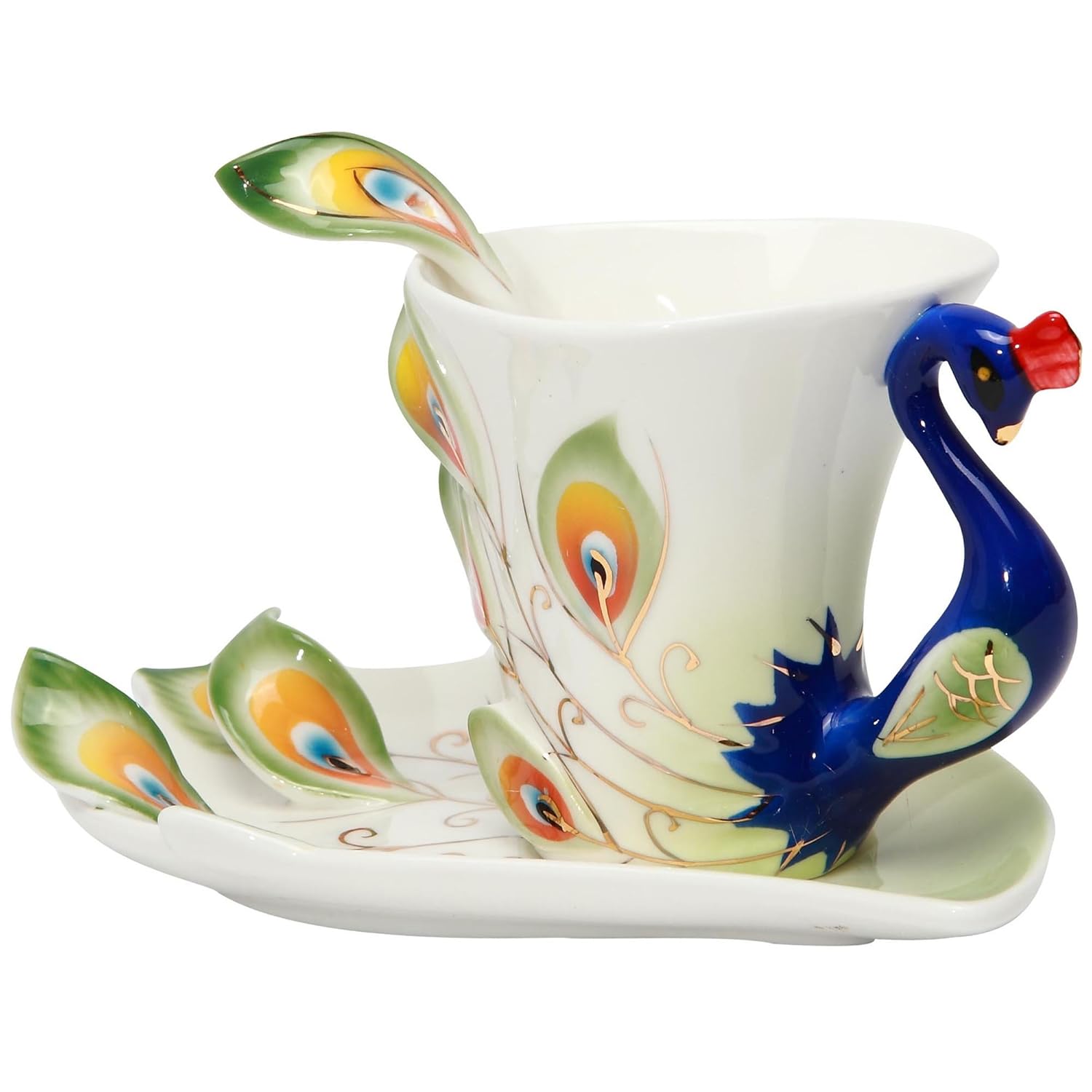 Why Use Green Elegant Handpainted Peacock Sculpted Decorative Porcelain Tea Coffee Cup and Saucer Set with Spoon ?