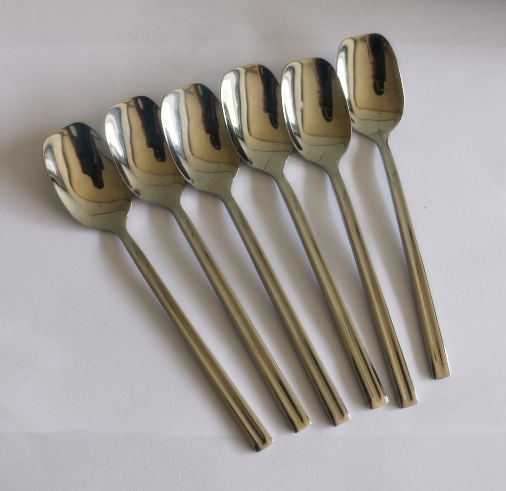 Huayoung Flatware Dessert Spoons Square Shape Ice Cream Spoons Teaspoons set of 6 best Specialty Knives