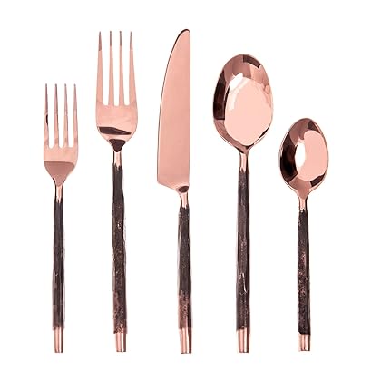 DAVID SHAW 922608 20 Piece Antiqua Flatware Set, Copper is best for youColor:Cooper Antiqua 20 piece flatware set, service for four. Stainless steel with copper plating and black graphite finish. The elegant round handles are sleek and beautifully balanced. Lead free and food safe.