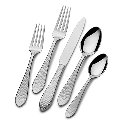 Wallace Elite Luminary 20-Piece Flatware Set, Stainless Steel is best for youThis Wallace Elite Luminary Flatware Set features striking handles that are textured with gleaming hammered dents, giving it a ruggedly metropolitan appeal. Constructed of superior quality 18/10 stainless steel, this set is ideal for everyday use as well as formal occasions. 20 piece set, service for four, includes (4) each: dinner fork, salad MORE fork, dinner knife, dinner spoon and teaspoon. Dishwasher safe.