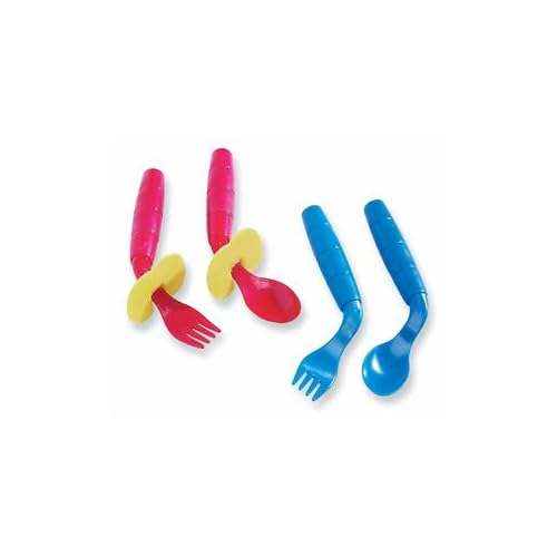 EasieEaters Curved Utensils - Left-handed w/shield is best for youEasieEaters, designed by an occupational therapist, promote greater success with hand-to-mouth feeding. They are individualized for children who prefer using either their left or right hand. Set includes fork and spoon. Dishwasher safe. Latex free. Assorted Colors.
