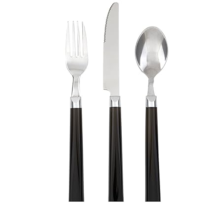 Gibson 12pc Palmdale Dinner Flatware Set- Black is best for youComplete any table setting with this beautiful flatware by Gibson. Stainless Steel with plastic handles. Tumble finish.Set Includes:* 4 Dinner Knifes* 4 Dinner Forks* 4 Dinner Spoons