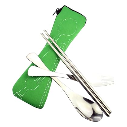 Handle with care Sometimes the finer tools require more delicate care.Despite its hardness our Chef Knife is fragile and should be handled with care.Instructions on how to properly care for the knife are provided.- Easy enough to rinse clean under water within a few seconds.- Packing a durable sheath to prevent accidents from happening.- Well-balanced when you're holding it in your hand.- Unable to leave a bad taste or smell on anything it touches.- Capable of saving you time by staying really sharp for years.Crysto Stainless Steel Fork, Spoon and Chopsticks Set with Textile Case is best for youDurable, lightweight stainless steel 3 piece set (spoon, fork & chopsticks). Great for traveling or outdoor activities. Keep clean: stored in stylish, washable neoprene case. Lightweight - only 50g. Great for travelers and carrying in your bag or backpack. Handy for office, car, sky, camping, scouts, holidaying and more. Size: Spoon & fork:6.5 inch, Chopsticks: 7.5 inch.