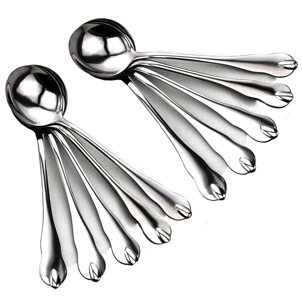 • The Set of 10 - ANFIMU Large Stainless Steel Restaurant & Hotel Quality Round Soup Spoons, Large Soup Spoons is a