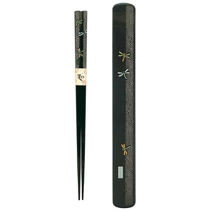• The Ryu Mei 058030 Dragonfly Japanese Black Chopstick Box and Chopstick Set, Black is a