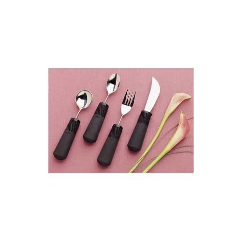 Handle with care Sometimes the finer tools require more delicate care.Despite its hardness our Chef Knife is fragile and should be handled with care.Instructions on how to properly care for the knife are provided.- Easy enough to rinse clean under water within a few seconds.- Packing a durable sheath to prevent accidents from happening.- Well-balanced when you're holding it in your hand.- Unable to leave a bad taste or smell on anything it touches.- Capable of saving you time by staying really sharp for years.Good Grips Weighted Utensils Set of 4 is best for youThe Good Grips Weighted Utensils Set of Four includes one each: Good Grips Weighted Teaspoon, Good Grips Weighted Tablespoon, Good Grips Weighted Fork, Good Grips Weighted Rocker Knife.These weighted utensils feature the same great design as the Good Grips Utensils. The 6 ounces of weight in the built-up handle help keep the user's hands steady when eating. Heavy eating utensils are often helpful for persons with limited hand control, hand tremors, Parkinson's disease or spasticity.Each of the Good Grips Weighted Utensils piece features the Good Grips handle. This large, non-slip handle is easy to hold and cushions the user's grip. The twist built into the metal shaft of the spoons and fork allows it to be bent to the left or right. This allows the user to customize the angle to their specific needs and helps make the movement to the mouth easier. Good Grips Weighted Utensil Set of 4 Features:Weighted utensils are ideal for those with hand tremors.Large soft rubber handle to cushion your grip.Bend for use with either the right or left hand.Dishwasher safe.Good Grips Weighted Utensil Set Specifications:Weighs: Each utensil weighs 6 oz.Set includes: One each: Good Grips Weighted Teaspoon, Good Grips Weighted Tablespoon, Good Grips Weighted Fork, Good Grips Weighted Rocker Knife. (Good Grips Soup Spoon is sold separately.)