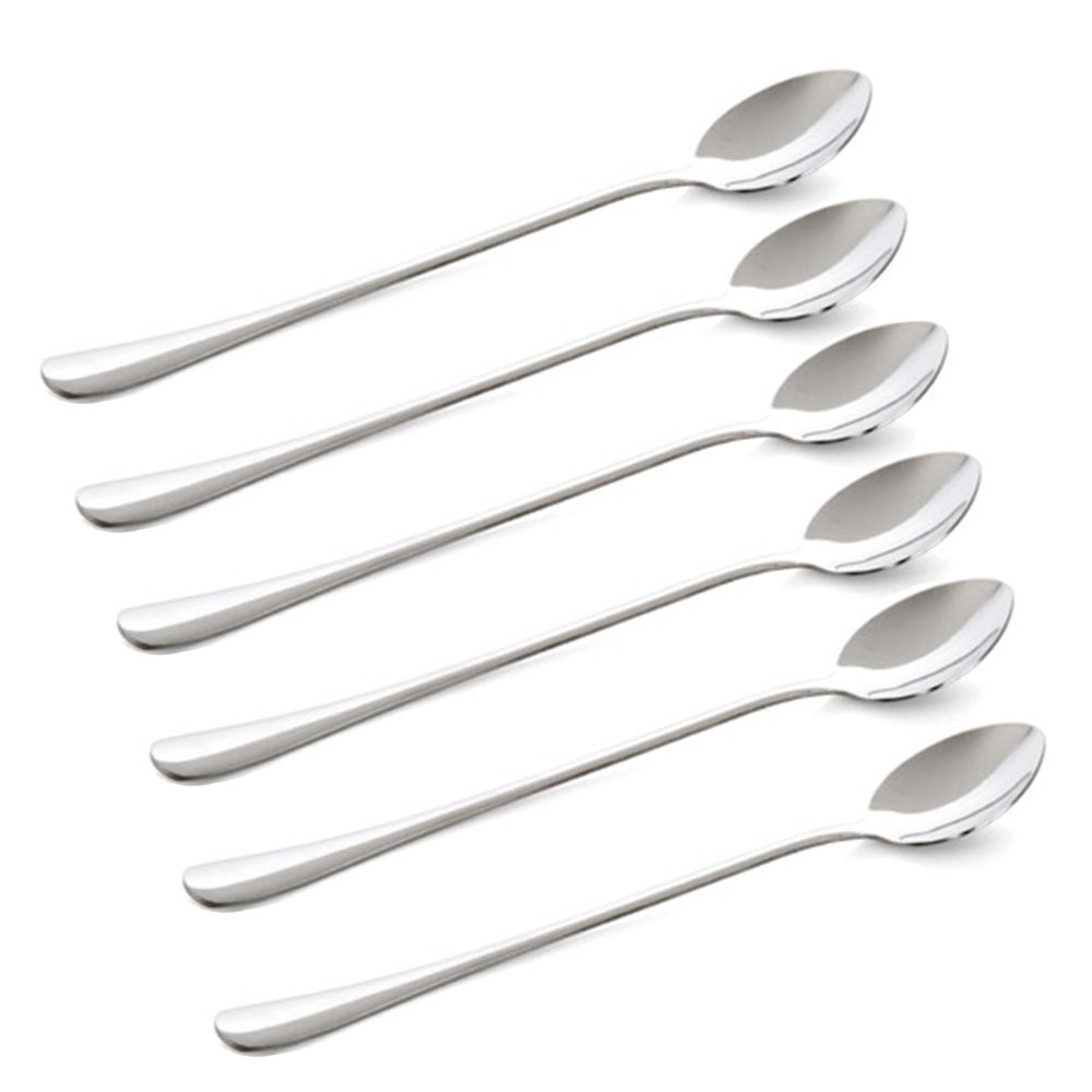 • The Happylife Long Handle Stainless Steel 6 Spoons Set for Ice Cream Spoons Tea, Coffee, or Dessert is a