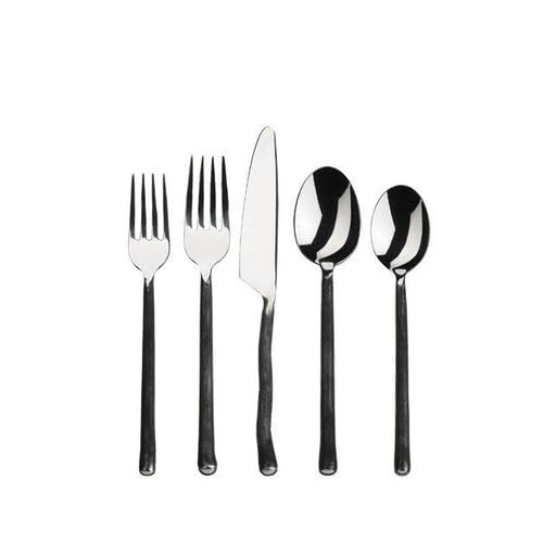 Handle with care Sometimes the finer tools require more delicate care.Despite its hardness our Chef Knife is fragile and should be handled with care.Instructions on how to properly care for the knife are provided.- Easy enough to rinse clean under water within a few seconds.- Packing a durable sheath to prevent accidents from happening.- Well-balanced when you're holding it in your hand.- Unable to leave a bad taste or smell on anything it touches.- Capable of saving you time by staying really sharp for years.Gourmet Settings Handmade Montana 20 Piece Flatware Set is best for you34-423 Features: -Handmade collection. -Set inludes 4 dinner knives, 4 dinner forks, 4 salad forks, 4 teaspoons and 4 tablespoons. -Material: Stainless steel. Finish: -Black. Material: -Stainless steel. Handle Material: -Stainless steel. Number of Items Included: -20. Dimensions: Dinner Fork Overall Height - Top to Bottom: -8'. Dinner Fork Width - Side to Side: -1'. Dinner Fork Depth - Front to Back: -0.3'. Salad Fork Overall Height - Top to Bottom: -6.75'. Salad Fork Width - Side to Side: -1'. Salad Fork Depth - Front to Back: -0.3'. Soup Spoon Overall Height - Top to Bottom: -8'. Soup Spoon Width - Side to Side: -1'. Soup Spoon Depth - Front to Back: -0.3'. Teaspoon Overall Height - Top to Bottom: -6.75'. Teaspoon Width - Side to Side: -1'. Teaspoon Depth - Front to Back: -0.3'. Knife Overall Height - Top to Bottom: -9'. Knife Width - Side to Side: -1'. Knife Depth - Front to Back: -0.3'. Overall Product Weight: -3.5 lbs.