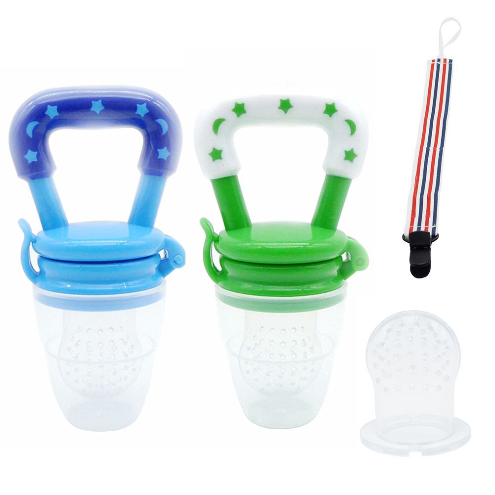 • The Vonisa Baby Fresh Food Feeder Baby Fruit Feeder Teething Toy Teether Nibbler Baby Supplies Toys 2 Set with Pacifier Clip and Feeding Tool Replacement Sac For Infant Boys (Medium) is a