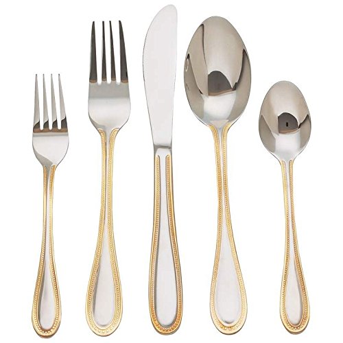 • The Sterlingcraft FW20GOLD 20 Piece Stainless Steel Flatware Set, Gold is a