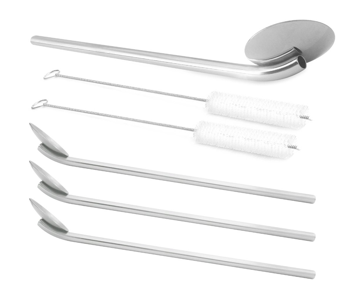 • The GFDesign Drinking Spoon Straws Stirrer Food-Grade 18/8 Stainless Steel - Set of 4 with 2 Cleaning Brushes is a