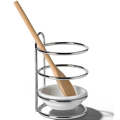 Handle with care Sometimes the finer tools require more delicate care.Despite its hardness our Chef Knife is fragile and should be handled with care.Instructions on how to properly care for the knife are provided.- Easy enough to rinse clean under water within a few seconds.- Packing a durable sheath to prevent accidents from happening.- Well-balanced when you're holding it in your hand.- Unable to leave a bad taste or smell on anything it touches.- Capable of saving you time by staying really sharp for years.Upright Spoon Rest (Chrome) (7"H x 4.5"D) is best for youClever and practical design! Chrome spoon rest frame has a removable ceramic dish for easy cleaning. This spoon holder keeps cooking spoons and utensils upright for less mess! Spoon not included. .