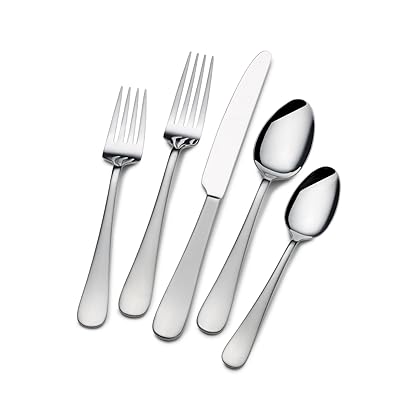 • The Gourmet Basics by Mikasa Satin Symmetry 20-Piece Stainless Steel Flatware Set, Service for 4 is a