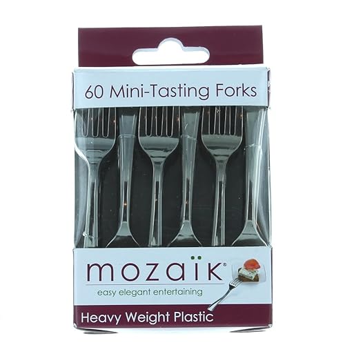 Handle with care Sometimes the finer tools require more delicate care.Despite its hardness our Chef Knife is fragile and should be handled with care.Instructions on how to properly care for the knife are provided.- Easy enough to rinse clean under water within a few seconds.- Packing a durable sheath to prevent accidents from happening.- Well-balanced when you're holding it in your hand.- Unable to leave a bad taste or smell on anything it touches.- Capable of saving you time by staying really sharp for years.Mozaik Mini-Tasting Forks 60 pcs. Cocktail Party Appetizers Silver is best for youSize:60 Forks Measures 3 7/8'. Made of heavy weight plastic. Coated in stainless steel. Dress up your hors d'ouerves.