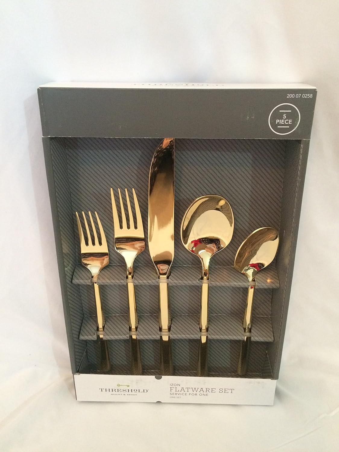 You buy Threshold 5 Piece Izon Flatware Set Service for (1) One - Gold with Coupon : RTO30 will be discounted 30% price Give an amateur samurai the sharpest sword in the world and they'll not know what to do with it, but once they've learnedhow to control it they'll be able to perform magical feats. Your chef knife skills will be because of how light it feels in your hand,which is roughly half the weight of the ones you use right now. The specially-designed handle adds the finishing touch,and you'll never feel as comfortable holding another knife again as soon as you touch it.