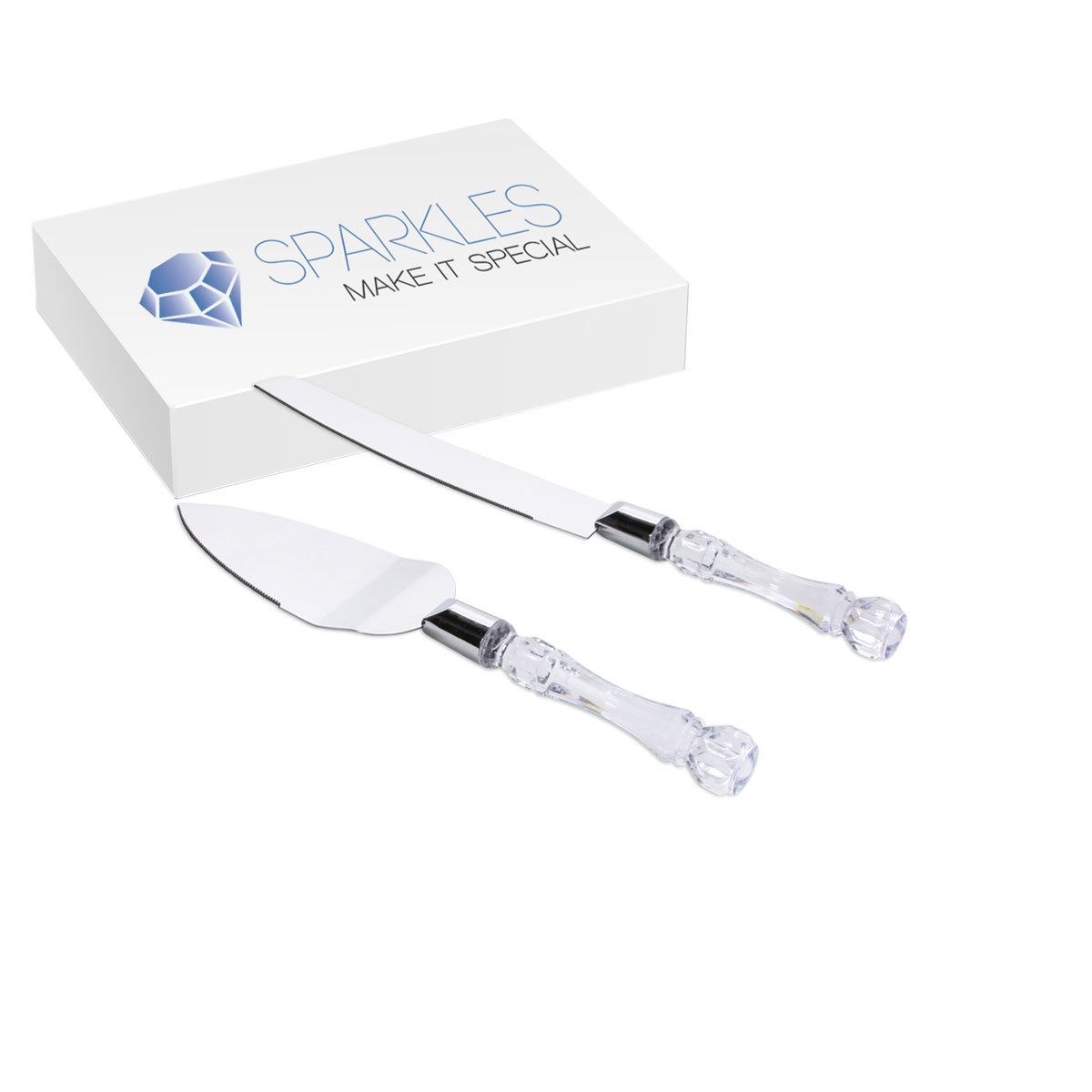 Handle with care Sometimes the finer tools require more delicate care.Despite its hardness our Chef Knife is fragile and should be handled with care.Instructions on how to properly care for the knife are provided.- Easy enough to rinse clean under water within a few seconds.- Packing a durable sheath to prevent accidents from happening.- Well-balanced when you're holding it in your hand.- Unable to leave a bad taste or smell on anything it touches.- Capable of saving you time by staying really sharp for years.Sparkles Make It Special Wedding Cake Knife and Server Set Wedding Birthday Faux Crystal Handle Silver is best for youThis listing is for a 2-piece wedding cake server set with Silver ringed faux crystal handles. This inexpensive set is perfect for weddings, receptions, birthdays, and dinner parties. Color: Silver/Crystal Material: Metal/Plastic Sparkles Make It Special is a US-owned business. All of our inventory is in the U.S. and ships directly from California. Plus we are proud to offer free shipping on every order.