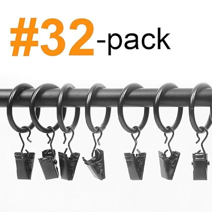 • The 32-pack (1") 1 Inch Black Matte Metal Curtain Rings with Clips (32 Drapery Rings with Clips) … is a