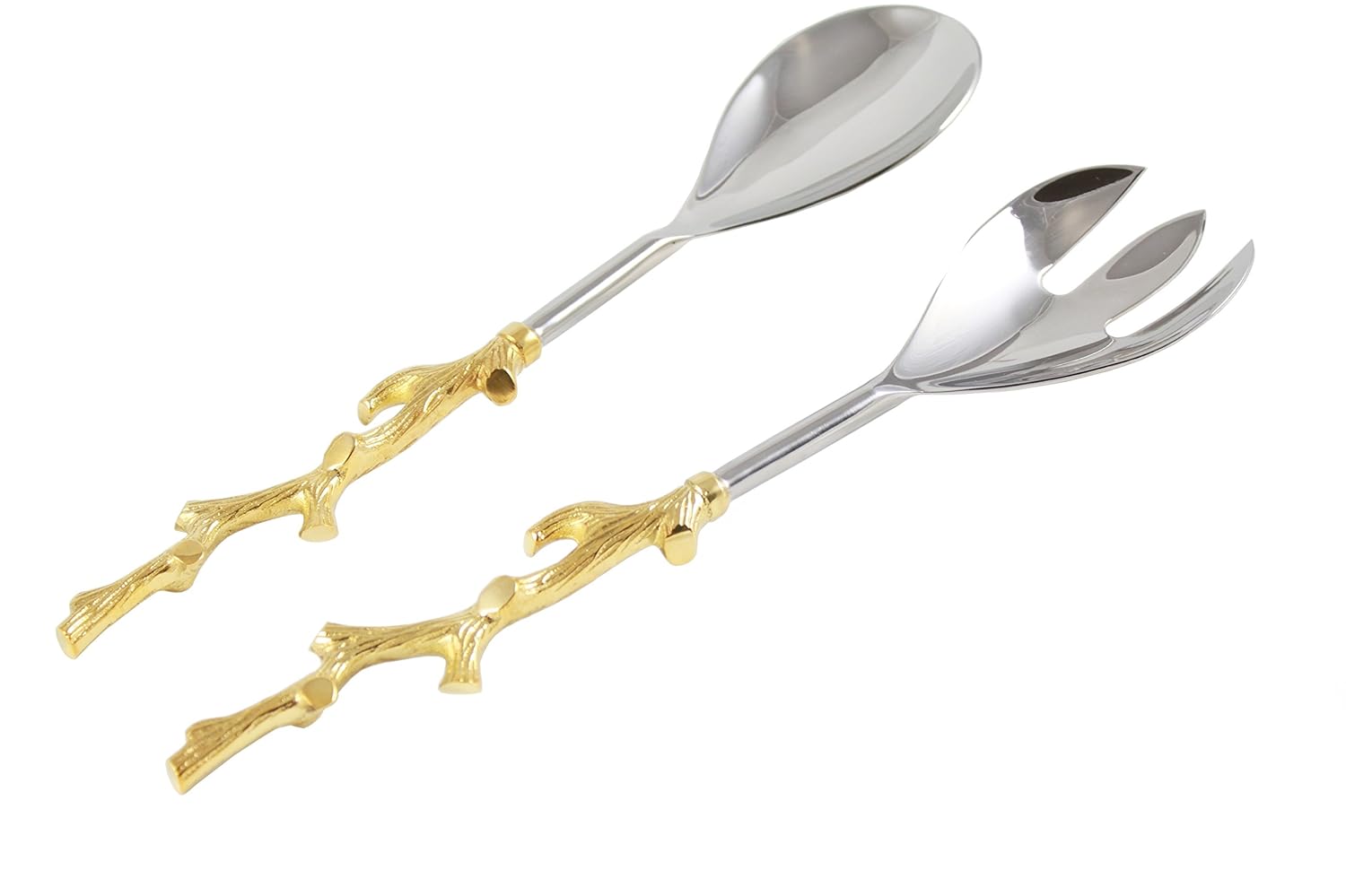 • The Server Set, Flatware, Serving Spoon and Fork, Tree Branch Design, 2-piece 18/10 Stainless steel with brass handles (light antique gold finish) is a