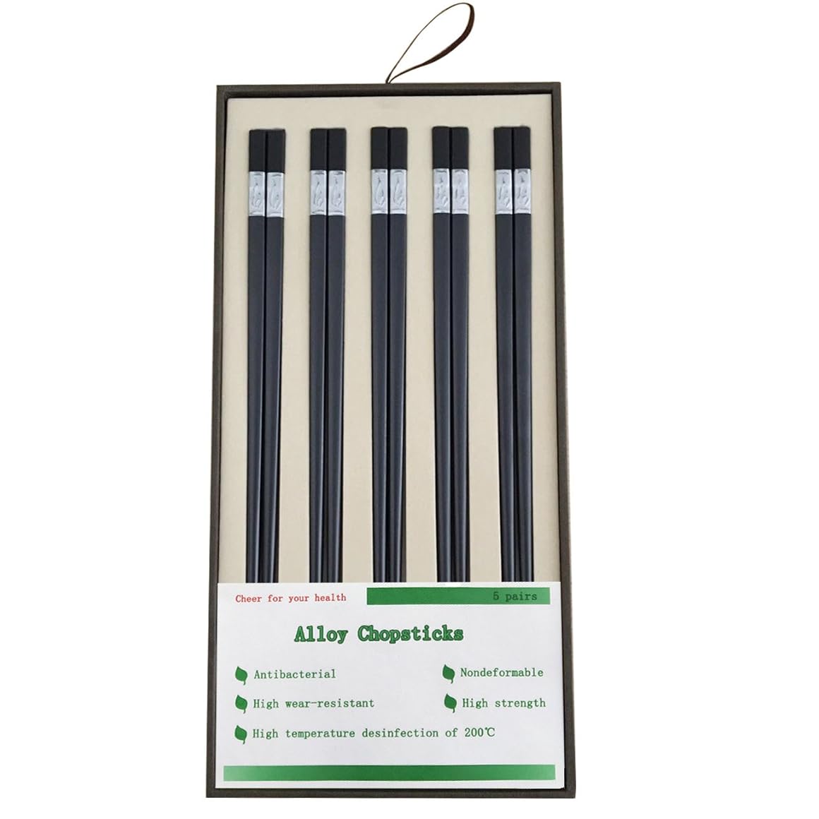 Handle with care Sometimes the finer tools require more delicate care.Despite its hardness our Chef Knife is fragile and should be handled with care.Instructions on how to properly care for the knife are provided.- Easy enough to rinse clean under water within a few seconds.- Packing a durable sheath to prevent accidents from happening.- Well-balanced when you're holding it in your hand.- Unable to leave a bad taste or smell on anything it touches.- Capable of saving you time by staying really sharp for years.Anlian Alloy Chopsticks with Stainless Steel Wrapping at The Top Ideal Gift Set Pack of 5 Pairs is best for youAnlian 5 Pairs Alloy Chopsticks Ideal Gift Set for family festival birthday PRODUCT INFORMATION - Material: alloy, stainless steel - Total Length: about 24cm/9.5 inches - Antibacterial, nondeformable, high wear-resistant, high hardness, high temperature desinfection of 200℃ - Anti-slip, the bottom portion of the chopsticks are textured - Elegant, pretty, and easy to hold, maneuver and clean FEATURE - You not only use them at home, but sometimes even at restaurants. - By taking these to Chinese restaurants, you don't add to the waste of trees that comes from using the restaurant's disposable chopsticks. - Suitable as a gift for birthday, wedding, business gifts, advertising promotions, festivals, fairs, employee benefits, etc NOTE - Please do not let the chopsticks for a long time soaked in water, damp, or direct sunlight exposure to prevent discoloration or deformation - Wash with the warm water or cold water, recommended hand wash - After you wash them, dry them with a cloth, put into disinfection cabinet to sterilize - Store in a dry and well-ventilated place when not in use, preventing damps PACKAGE - A total of 10 chopsticks, 5 pairs OTHER - If you have any questions, please contact us directly, we will do our best to solve it and give you a satisfactory solution - Please allow within 1cm differs due to manual measurement , thanks for your understanding