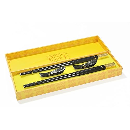 • The Decorum "Golden dragon" - Fine set of chopsticks made of ebony in gift box (2 pairs of chopsticks and chopstick rests). Dimensions: 26,5cm x 7,5cm x 3cm - CS-EW-S2-01 US is a